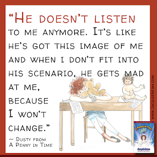 "Dusty, there's something I'm going to tell you about my father that made me face some of the very feelings you're having now." She stopped for a moment and I could see by the frown lines between her eyes that she was having a hard time choosing the right words. "Like loving your father and thinking he would always be there for you, then he isn't. Saying he'll do something special with you, then leaving you high and dry, making excuses for all the many broken promises." She laughed, like you do when you feel like crying.